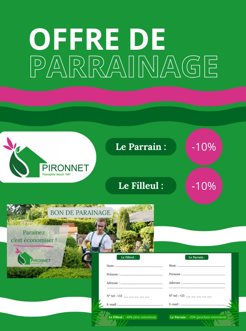 Vous aimez le travail de Pironnet Paysage ? Recommandez-nous à vos proches et profitez de notre Offre Parrainage :